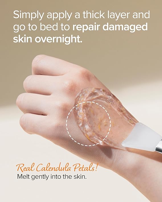 formulated with Calendula Extract and Peptides to soothe the skin, improve elasticity, and reduce the appearance of fine lines while you sleep. This gentle yet effective formula deeply hydrates and supports skin repair, leaving the skin soft, smooth, and refreshed by morning.