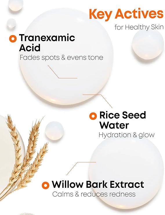 • Tranexamic Acid (TXA): Helps reduce the appearance of pigmentation and dark spots