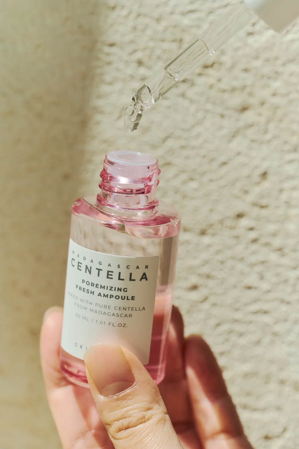 Skin1004 Madagascar Centella Poremizing Fresh Ampoule helps refine pores, control oil, and soothe skin while providing lightweight hydration.